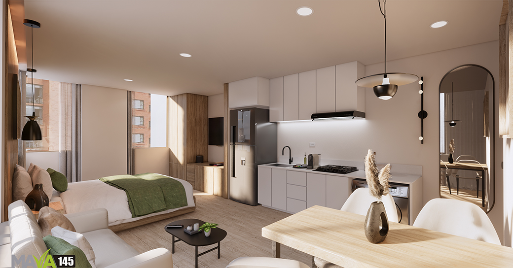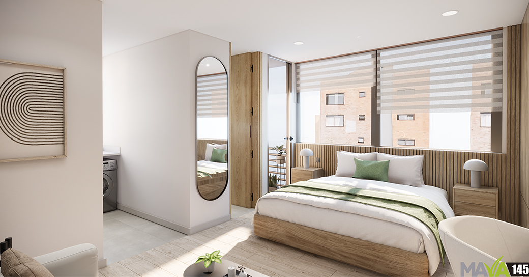 MAVA 145 es un Proyecto de Vivienda propiedad horizontal, estrato 4, ubicado en BOGOTA, en la Calle 145a # 21-19, Sector las Margaritas Cedritos, el cual contiene 41 apartaestudios y apartamentos, con áreas entre los 24,10mt2 y los 59,06mt2 en construcción tradicional. Estas unidades de vivienda contaran en su área social con un Lobby Tipo Hotel, Ascensor, cuarto de basuras, Salón Social, Gimnasio.